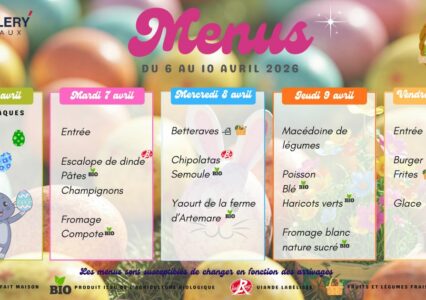 Voici les menus du 6 au 10 avril 2026 à la cantine :