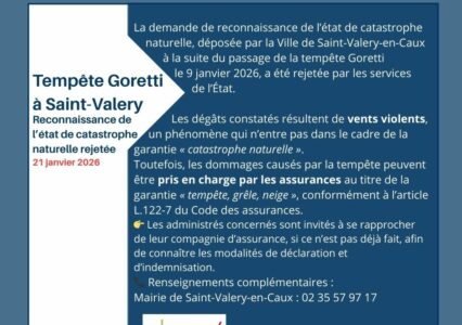 Malheureusement, la demande de reconnaissance de l’état de catastrophe naturelle, déposée par la Ville de Saint-Valery-en-Caux à la suite du...
