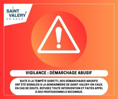 Suite à des signalements de démarchages abusifs effectués auprès de la Gendarmerie, la Ville rappelle qu’elle n’a agréé aucune entreprise pour intervenir chez les particuliers et qu’aucun démarchage en porte-à-porte ou téléphonique n’a été autorisé.