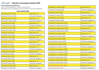 Alors que le nouveau mode de collecte en porte-à-porte, incluant le tri sélectif et assuré par la CCCA, s’apprête à commencer à Saint-Valery-en-Caux, la Municipalité tenait à remercier toutes les personnes venues récupérer leurs sacs poubelles translucides et leur bac jaune, lors des permanences assurées par les élus et les agents de la Ville en novembre et décembre 2025.